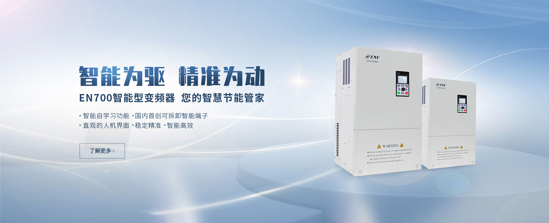 EN500/EN600系列高性能磁通矢量變頻器采用先進的控制方式實現(xiàn)了高轉(zhuǎn)矩、高精度、寬調(diào)速驅(qū)動,可實現(xiàn)有PG矢量控制,無PG矢量控制,具有速度矢量和轉(zhuǎn)矩矢量兩種工作方式,能快速限住沖擊電流,廣泛用于高端制造業(yè)。該系列產(chǎn)品控制精度高、速度響應(yīng)快、低頻特性優(yōu)越,智能檢測與保護完善,豐富的外圍總線擴展、端子擴展、繼電器擴展、模擬量擴展等。
